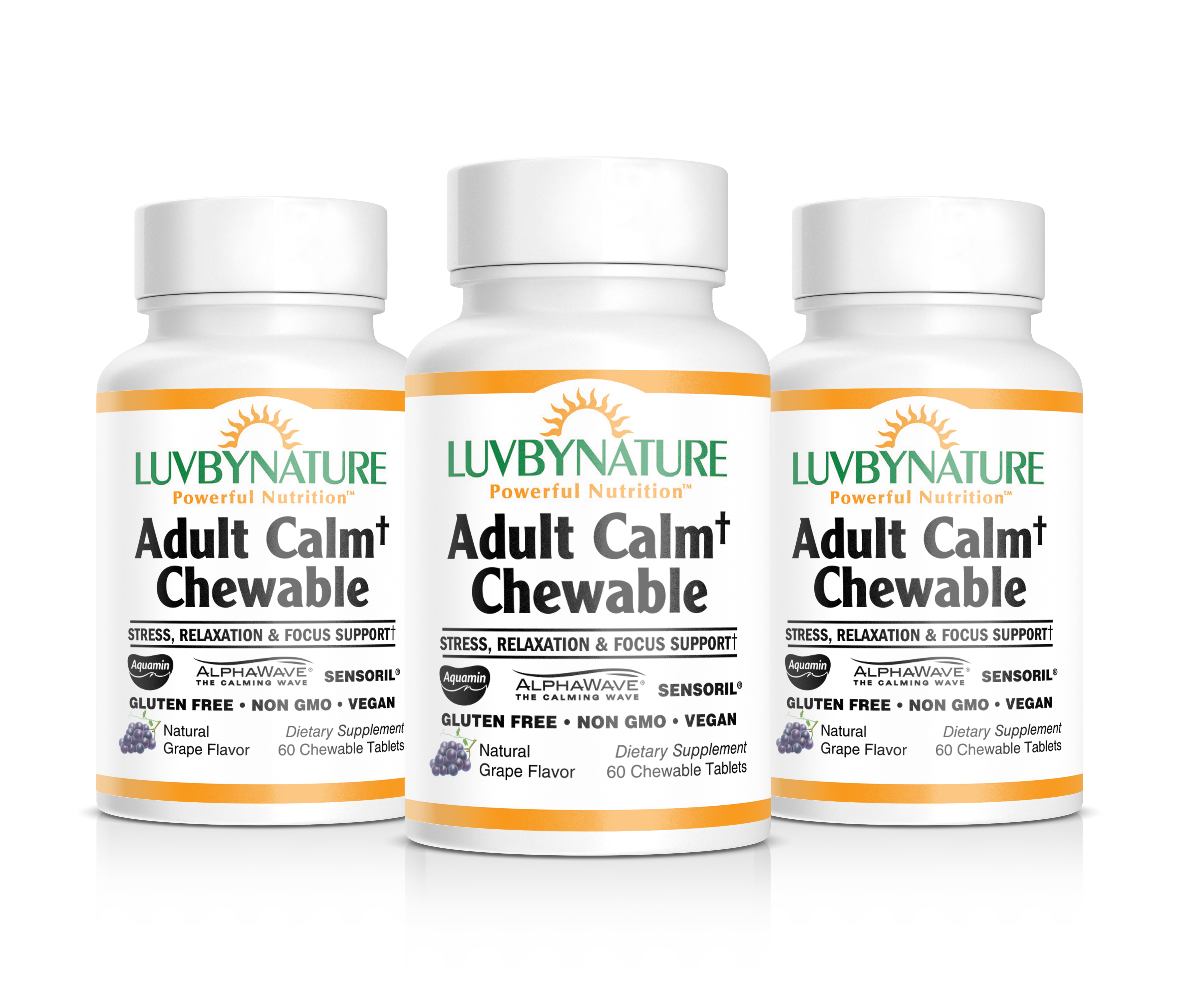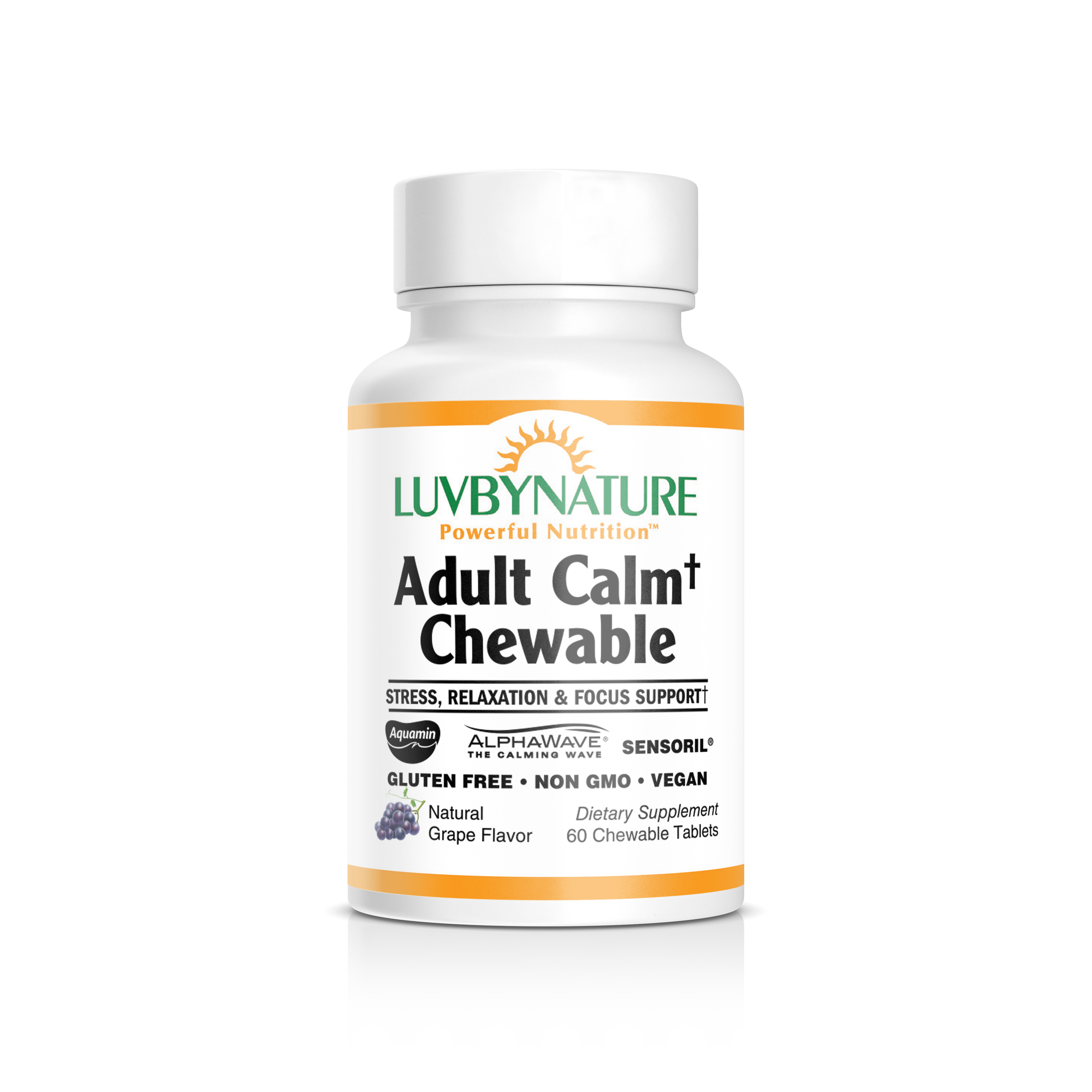 This LuvByNature product gives you Aquamin® Magnesium to support a more relaxed feeling and better quality sleep. Adult Calm+ also includes AlphaWave® L-Theanine which promotes relaxation without a drowsy feeling, improved mental clarity, and enhanced memory. This product is chewable and ideal to support your desire to reduce stress and support mental focus.