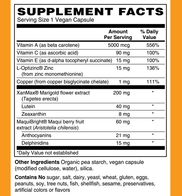 Features XanMax®, which supports overall eye health, enhances night vision, contrast sensitivity, and focus, reduces visual fatigue from screen time, and offers antioxidant protection.*