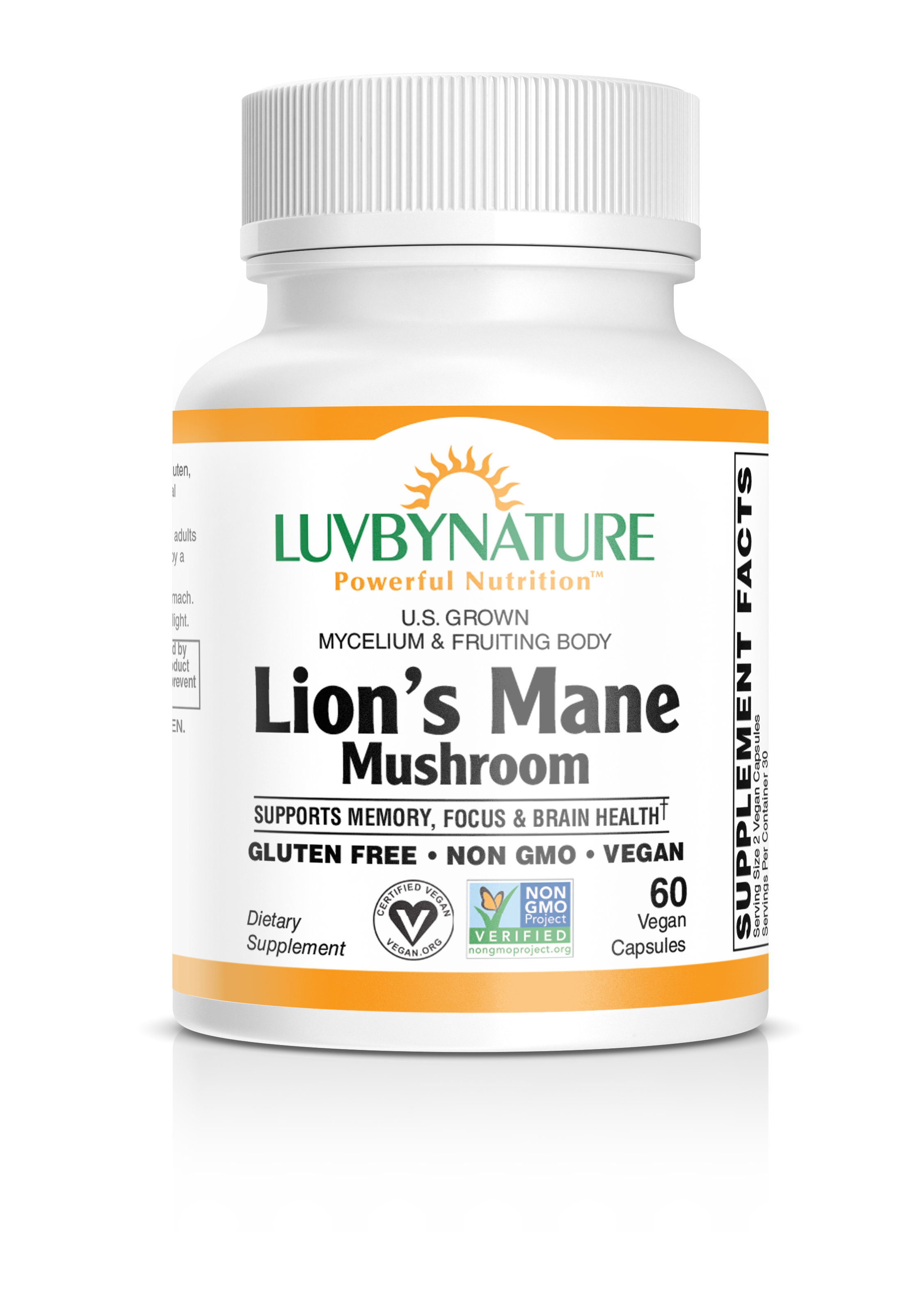 - 2 Vegetarian Capsules providing 1g of Organic Lion’s Mane Mushroom (Hericium erinaceus) derived from mycelium and fruiting body.