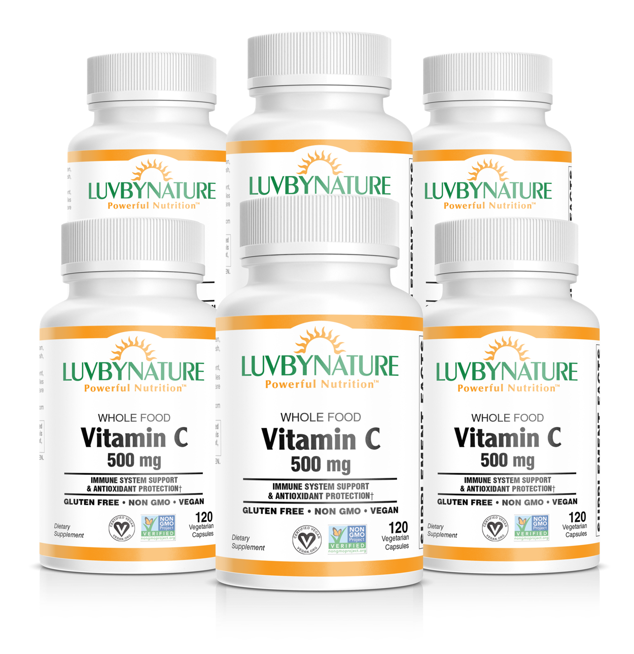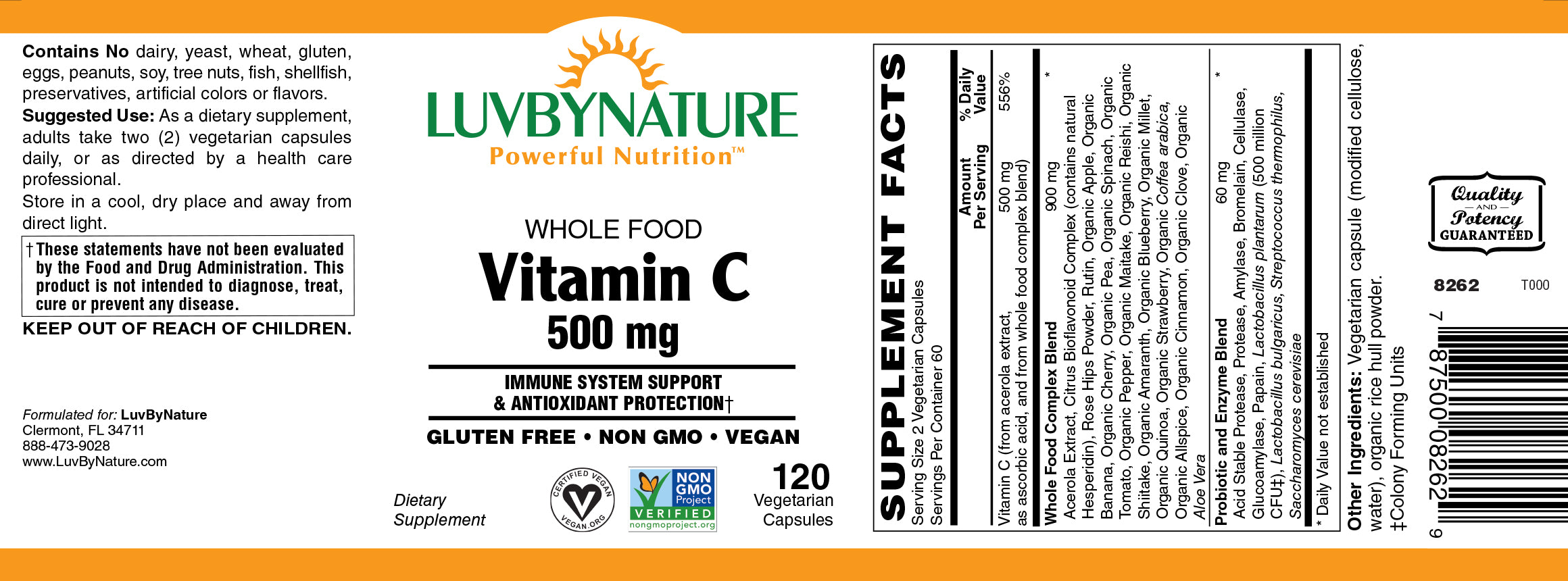 - 500mg Vitamin C per serving from acerola extract, as ascorbic acid, and from our Whole Food Complex Blend.